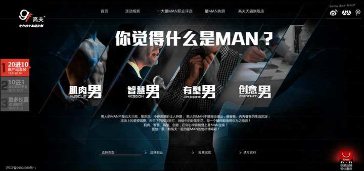 市場上唯一“專為男士高級定制”的個人護理品牌——高夫,在網(wǎng)絡打造“最MAN十大男性職業(yè)”事件,吸引消費者關注并積極參與到活動中,在網(wǎng)絡掀起最MAN職業(yè)的話題和熱潮。