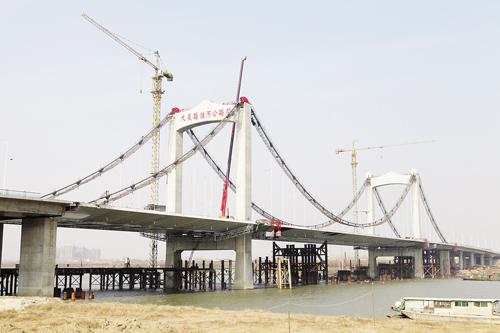 計(jì)劃年底通車的大慶路淮河公路橋,隨著昨天下午南接線的瀝青混凝土全部鋪筑完成,主體建設(shè)宣告全部結(jié)束。進(jìn)入通車倒計(jì)時(shí)前的大橋,正在全面“美容”,等待年底驚艷亮相。