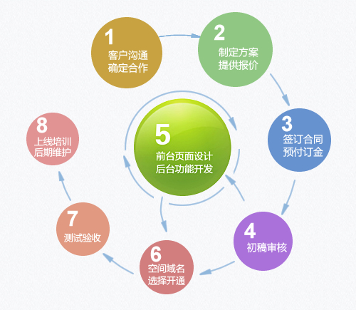 網(wǎng)站建設(shè)流程概述:客戶溝通,確定合作意向→制定建設(shè)方案,提供報價→簽訂合同,預(yù)付定金→初稿審核→前臺頁面設(shè)計(jì),后臺程序開發(fā)→空間及域名選擇、開通→測試驗(yàn)收→上線培訓(xùn),后期維護(hù)
