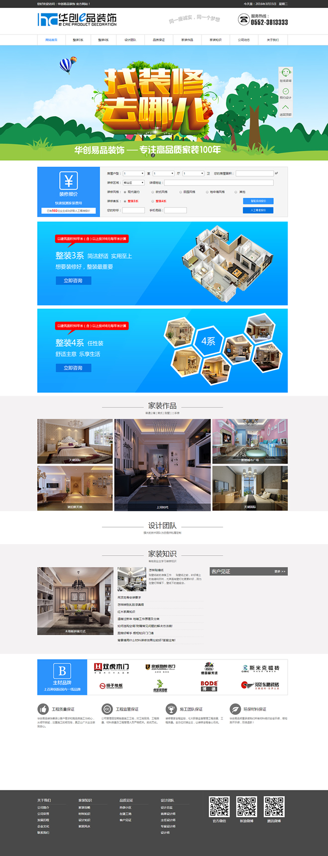 安徽華創(chuàng)e品裝飾工程有限公司,公司主要從事住宅裝飾設計,施工,家具軟裝為一體的整體家裝公司。 華創(chuàng)e品裝飾以創(chuàng)新的姿態(tài)為家裝領域精心設計出398劃算裝裝修理念,以整體家裝首選華創(chuàng)為定位,以健康家居環(huán)境為使命,服務于廣大用戶。引領整裝產品模式的改